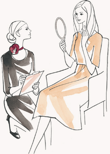 お客様のフェイスバランス、眉周りの骨格や筋肉、毛質や毛の生え方を確認します。眉のお悩みやご要望もお伺いします。
