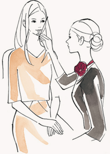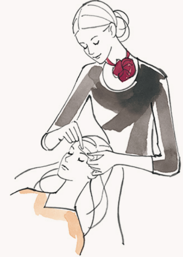 アナスタシア ミアレの理論= “Beauty Logos”に基づき、眉頭・眉山・眉尻の3つのポイントを定めます。そして、自眉を活かし、あなただけの眉のガイドラインを決定します。