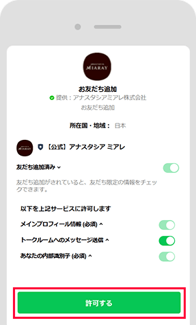 アナスタシア ミアレの「友だち追加」ページが表示されます。